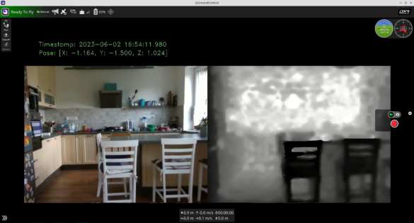 Video streaming was important for monitoring the drone during flights. The stream included three things: RGB camera video, depth map from the depth sensor, and metadata with timestamp and the drone’s current position (X, Y, Z).