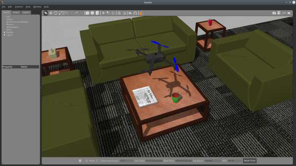 [Drone model in simulated environment]