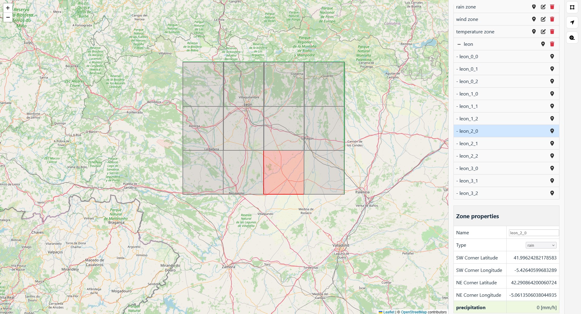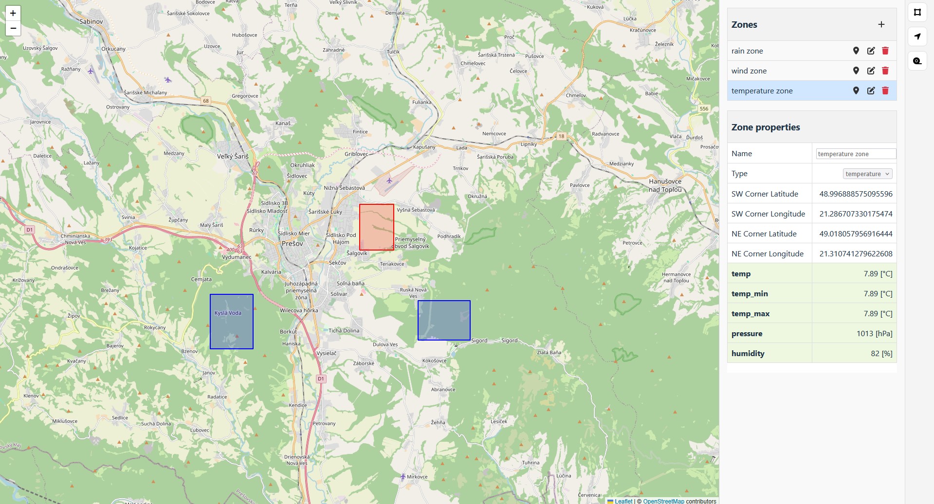 For the map I used Leaflet with default OpenStreetMap tiles. Leaflet provides everything needed to draw rectangles, visualize zones, and even create new zones directly on the map.